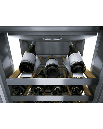 De stijlvolle flespresentatiehouder zet uw edele wijn in de schijnwerpers en vestigt de aandacht op het wijnetiket. Het biedt ook een veilige houvast voor geopende flessen. Alleen te plaatsen op de bovenste plank van de middelste of onderste zone.